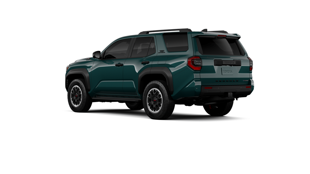 - Black honeycomb-style grille, mirror caps, door handles and overfenders; color-keyed rear spoiler; black "TRD OFF ROAD" and "4RUNNER" badges