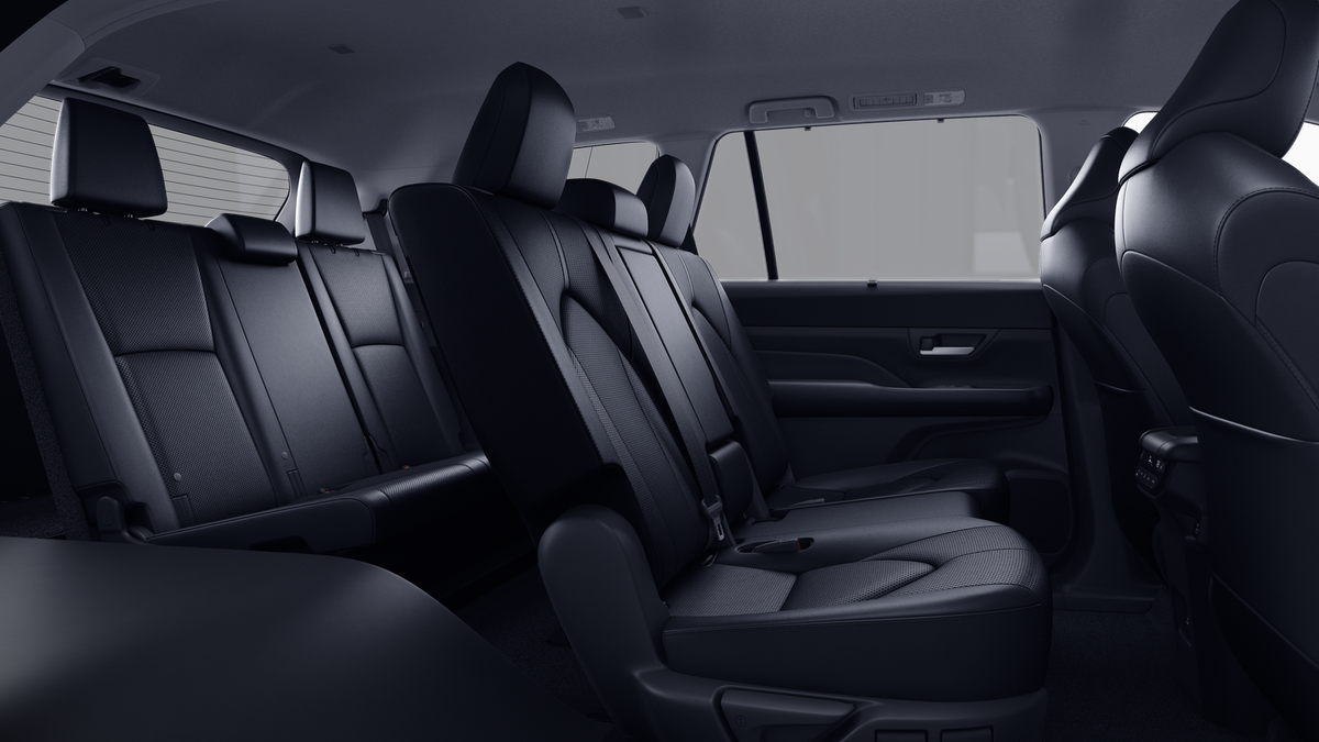- 7-passenger seating with second-row fold-down captain's chairs and fold-down inboard armrests, adjustable headrests and two cup holders mounted on the floor; and 60/40 split, fold-down third-row seats with sliding headrests and recline function