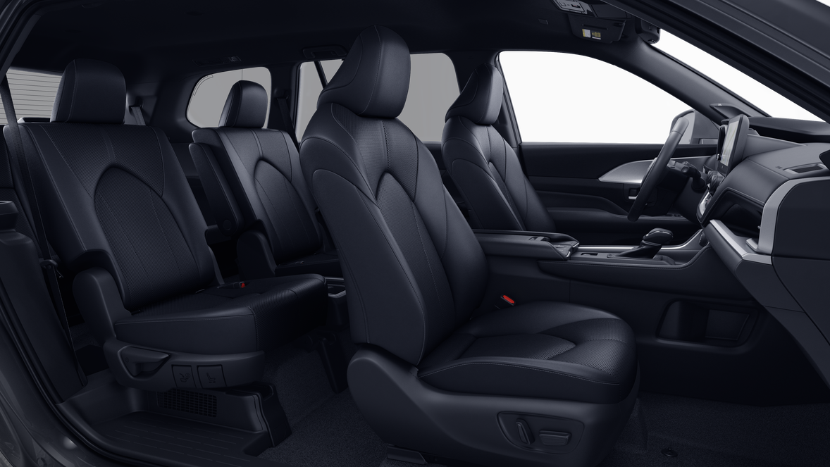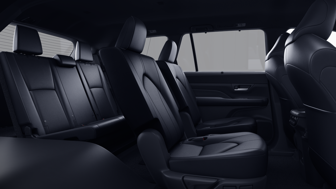 - 7-passenger seating with second-row fold-down captain's chairs and fold-down inboard armrests, adjustable headrests and two cup holders mounted on the floor; and 60/40 split, fold-down third-row seats with sliding headrests and recline function