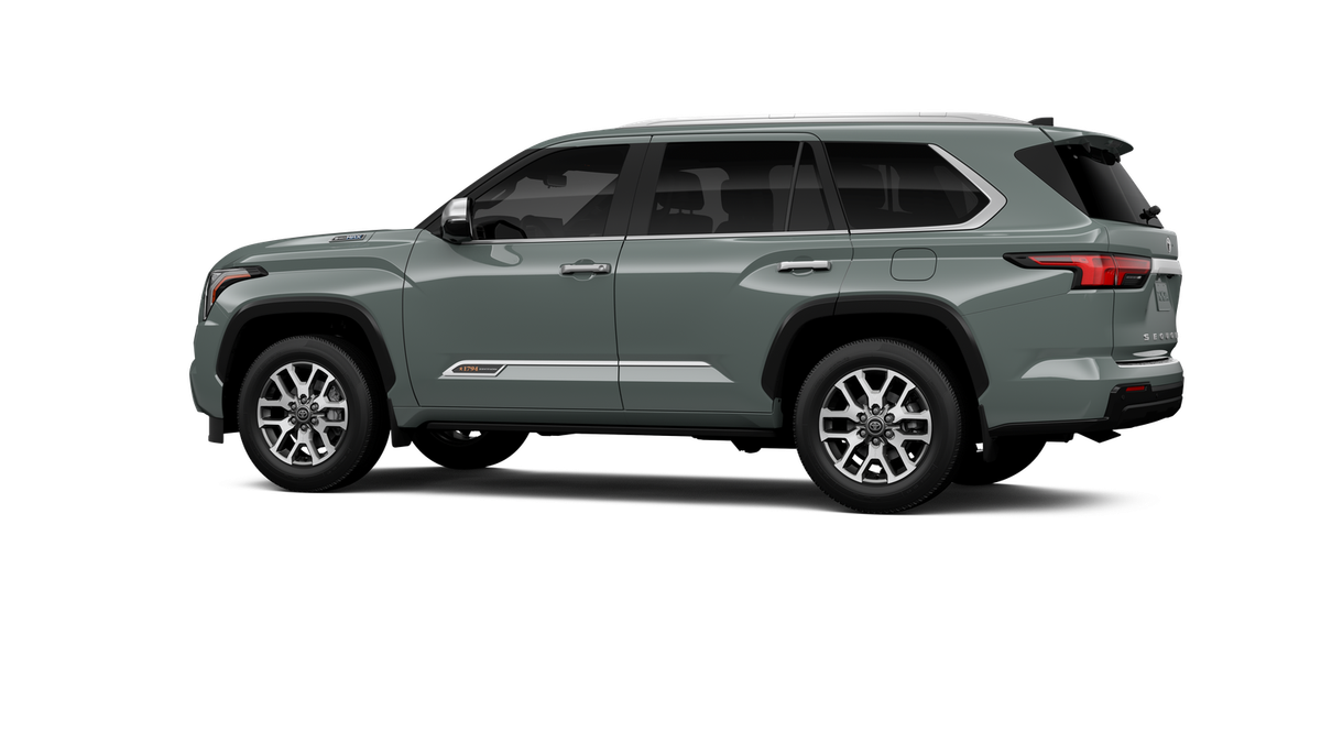 - Bright-chrome "SEQUOIA" rear door badge, chrome "1794 EDITION" door badge and garnish, door handles, window molding and mirror caps; color-keyed tailgate spoiler; black-painted overfenders
