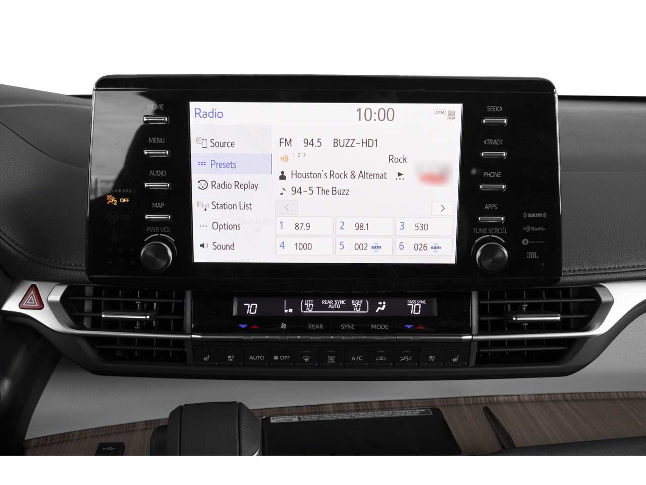 - Radio: Toyota JBL Audio Multimedia System -inc: 12.3" display, 12 JBL speakers including subwoofer and amplifier, wireless Apple CarPlay, Android Auto compatibility, SiriusXM 3-month trial subscription, See toyota.com/connected-services for details