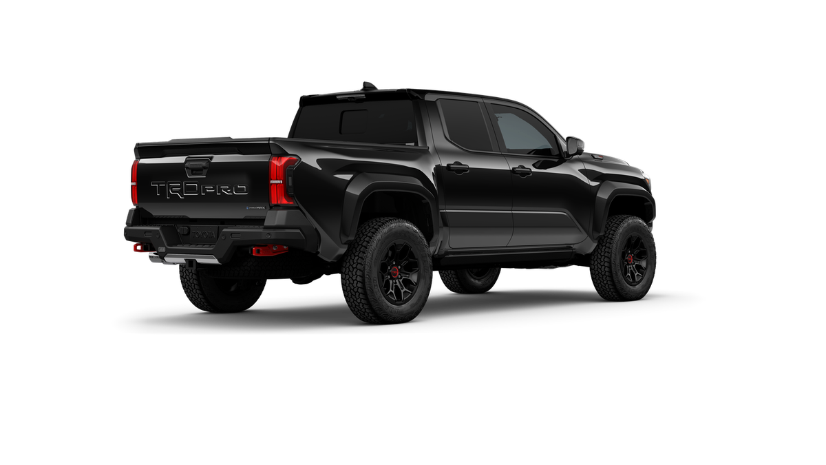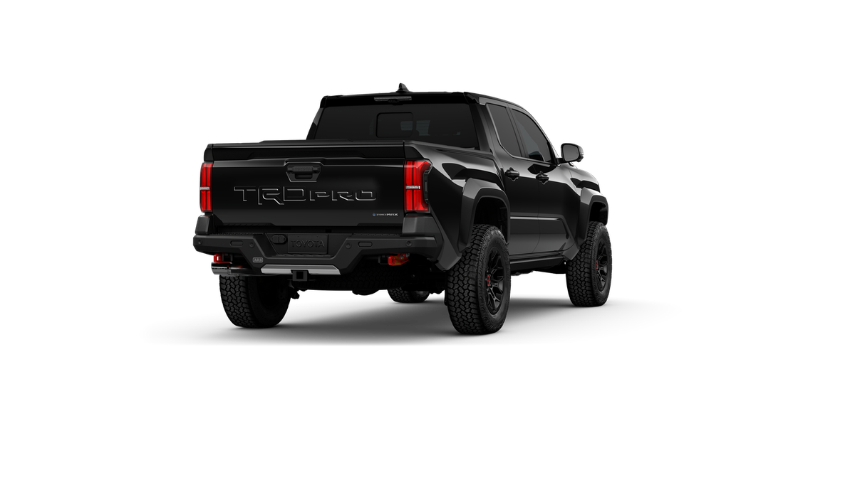 - "TRD Pro" stamped power open-and-close tailgate with hands-free knee-lift assist, integrated taillight bump switches, and jam protection