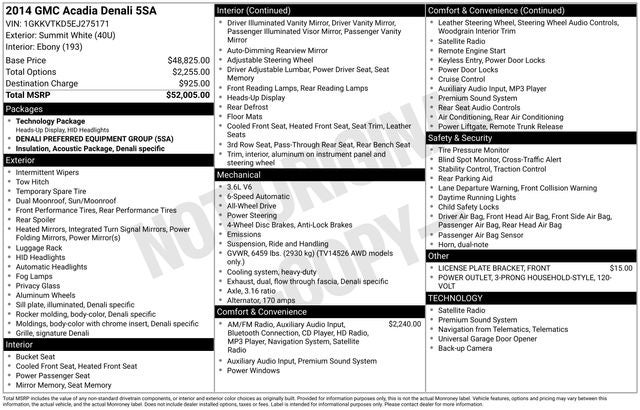 INCLUDES PREPAID MAINTENANCE, AWD, Ebony Leather. Summit White 2014 GMC Acadia Denali AWD 6-Speed Automatic 3.6L V6 SIDI