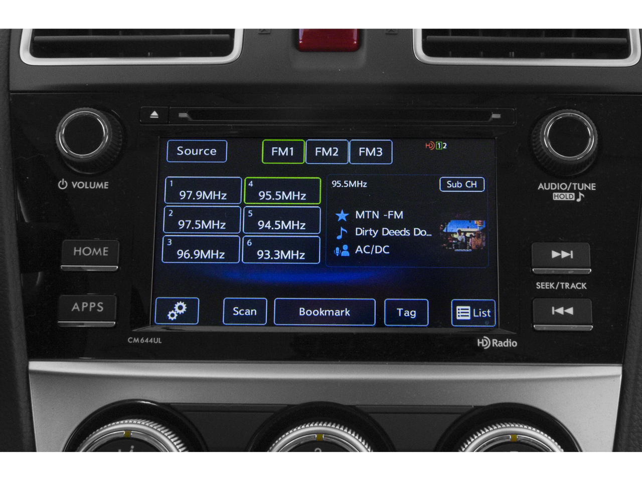 - Radio: Subaru Starlink 6.2" Multimedia System -inc: Base type, AM/FM w/HD single disc CD player, MP3/WMA/CRR/RW file capability, single touch gesture high resolution 6.2" LCD display screen, Radio Broadcast Data System (RBDS), Bluetooth audio streaming connectivity, Bluetooth hands-free phone connectivity, iPod control capability, iTunes tagging capability, smartphone integration, AHA infotainment, Pandora, iHeart radio, USB port, 3.5mm auxiliary input jack and 4 speakers