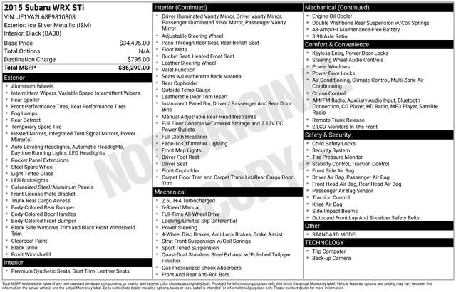 Ice Silver Metallic 2015 Subaru Impreza WRX STi AWD Close-Ratio 6-Speed Manual 2.5L DOHC Intercooled High-Boost DAVCS