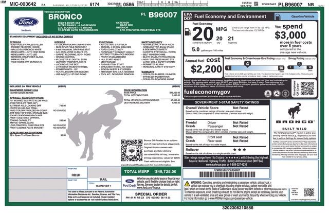 - Vehicle Name: Ford Bronco