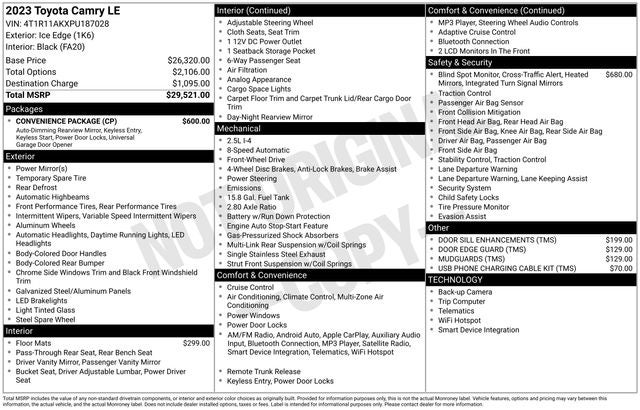 Cloth. Odometer is 22169 miles below market average! 2023 Toyota Camry LE FWD 8-Speed Automatic 2.5L I4 DOHC 16V
