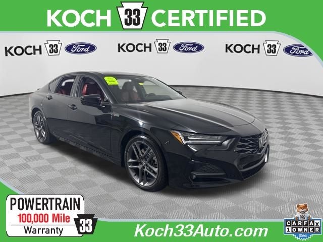 CLEAN CARFAX... NO ACCIDENTS, ONE OWNER, INCLUDES PREPAID MAINTENANCE, AND KOCH 33'S EXCLUSIVE UNLIMITED TIME/100000 MILE POWERTRAIN WARRANTY, ABS brakes, Alloy wheels, Electronic Stability Control, Exterior Parking Camera Rear, Heated and Ventilated Front Sport Seats, Heated door mirrors, Heated front seats, Low tire pressure warning, Power moonroof, Speed control, Steering wheel mounted audio controls, Traction control, Ventilated front seats. Black 2025 Acura TLX A-Spec Package SH-AWD AWD 10-Speed Automatic 2.0L DOHC
